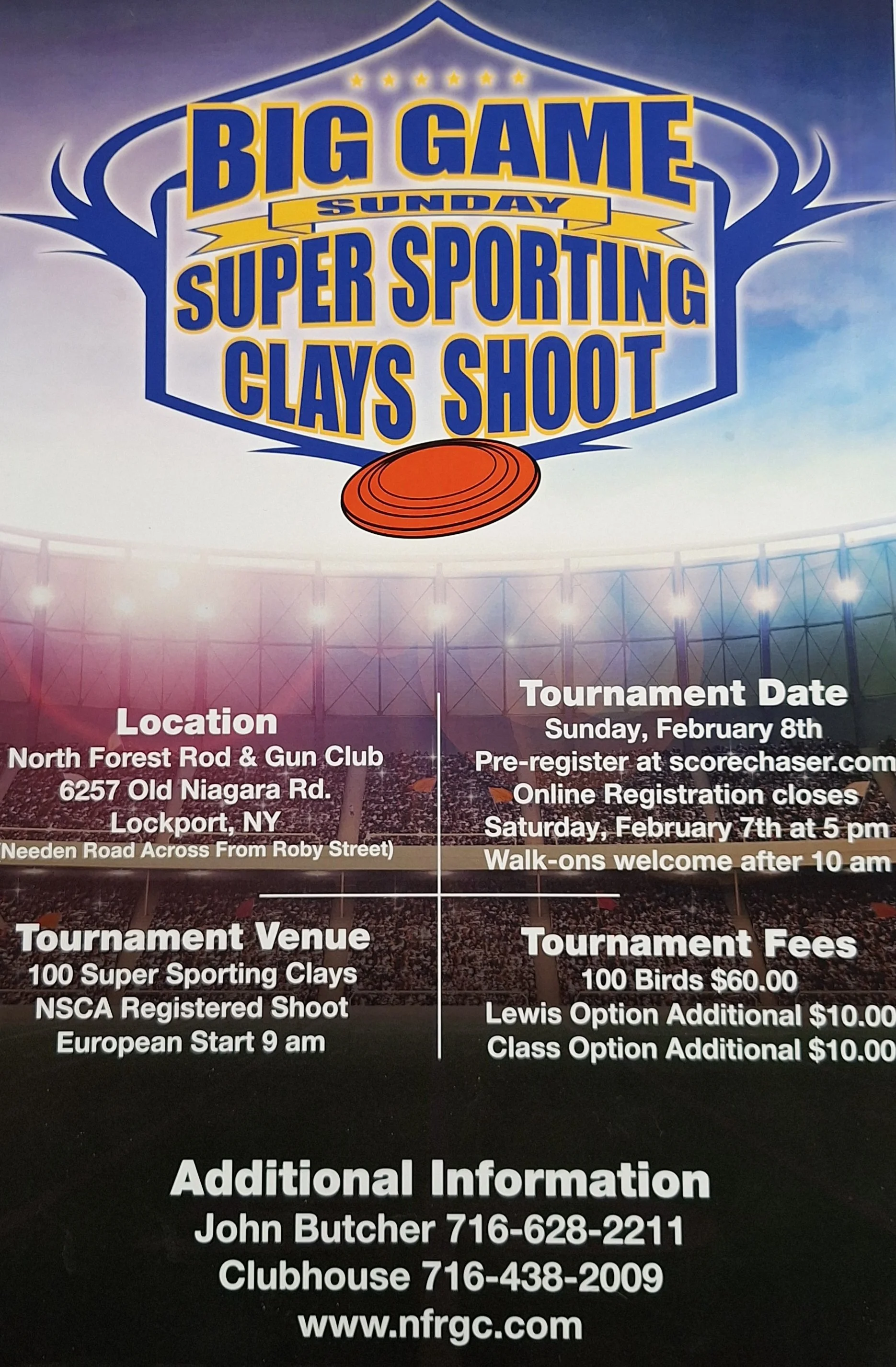 Jan 7 9:00 AM09:00 Big Game Sunday Super Sporting Clays Shoot Wednesday, January 7, 2026 9:00 AM 2:00 PM 09:00 14:00 Google Calendar ICS View Event →